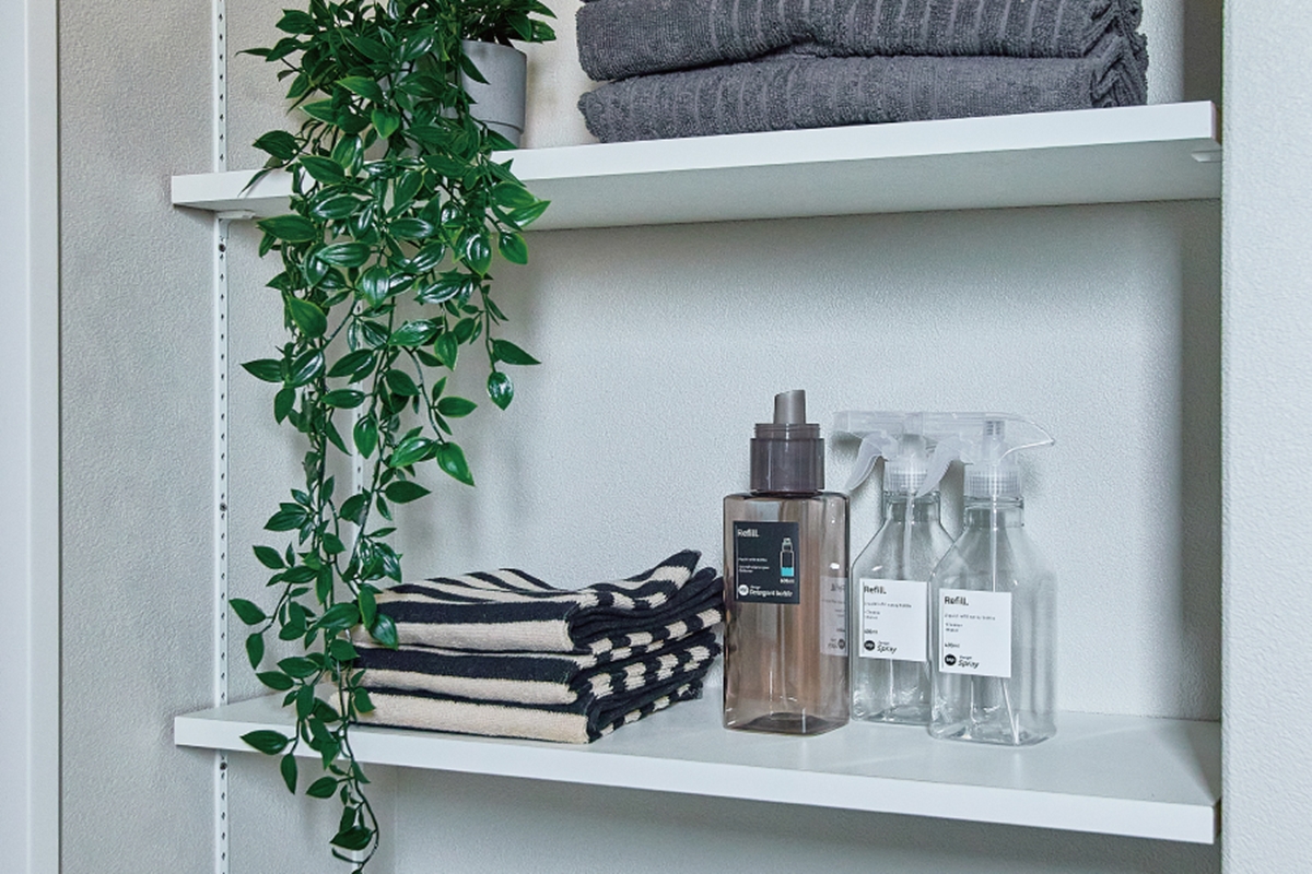 タオルや洗剤、シャンプーやボディソープといったお風呂用品のストックもしまえる収納を確保しました。