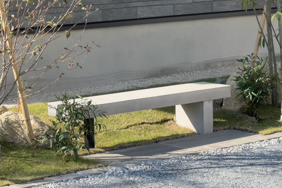 シンボルツリーには、春に小さな花を咲かせ、秋に実をつけるオリーブを採用。常緑樹なのでお手入れがラクなことも魅力です。