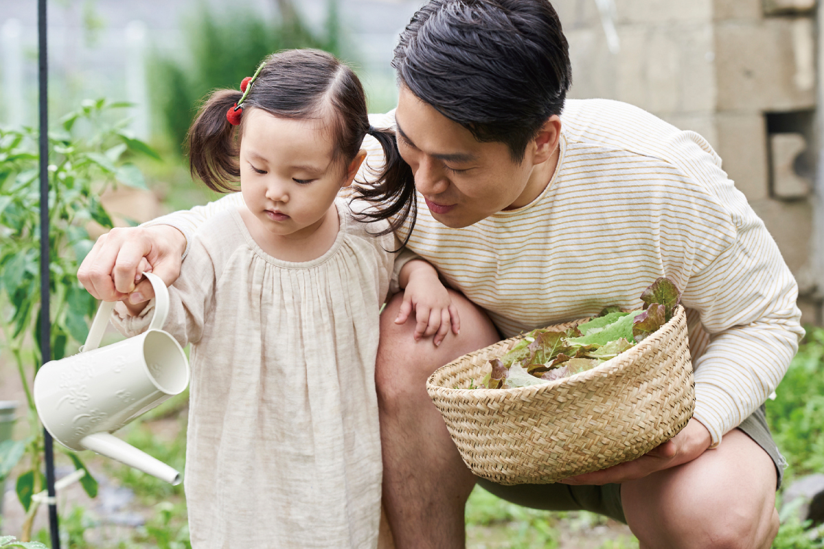 親子で一緒に土に触れ、育て、収穫が楽しめるポタジェを確保しています。収穫した実を料理に使うことで、子どもの食育にも繋がります。