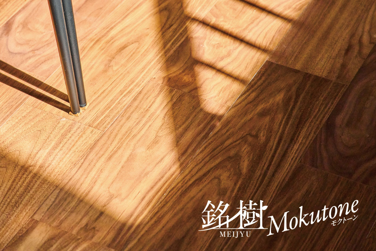 施したSIAA認証取得のフローリング「銘樹モクトーン」を採用しました。天然木特有の風合いや美しさを感じながら、家族の健康に配慮する床材です。※カラーは号棟により異なります。
