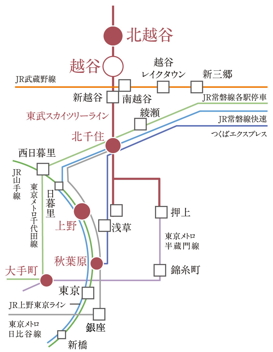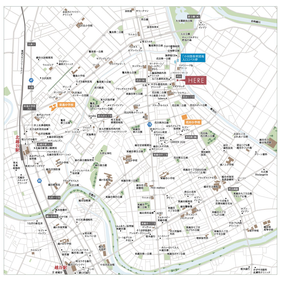 東武スカイツリーライン「北越谷」駅へ自駅転車10分・ 東武スカイツリーライン「越谷」駅へ自駅転車15分でアクセス可能。