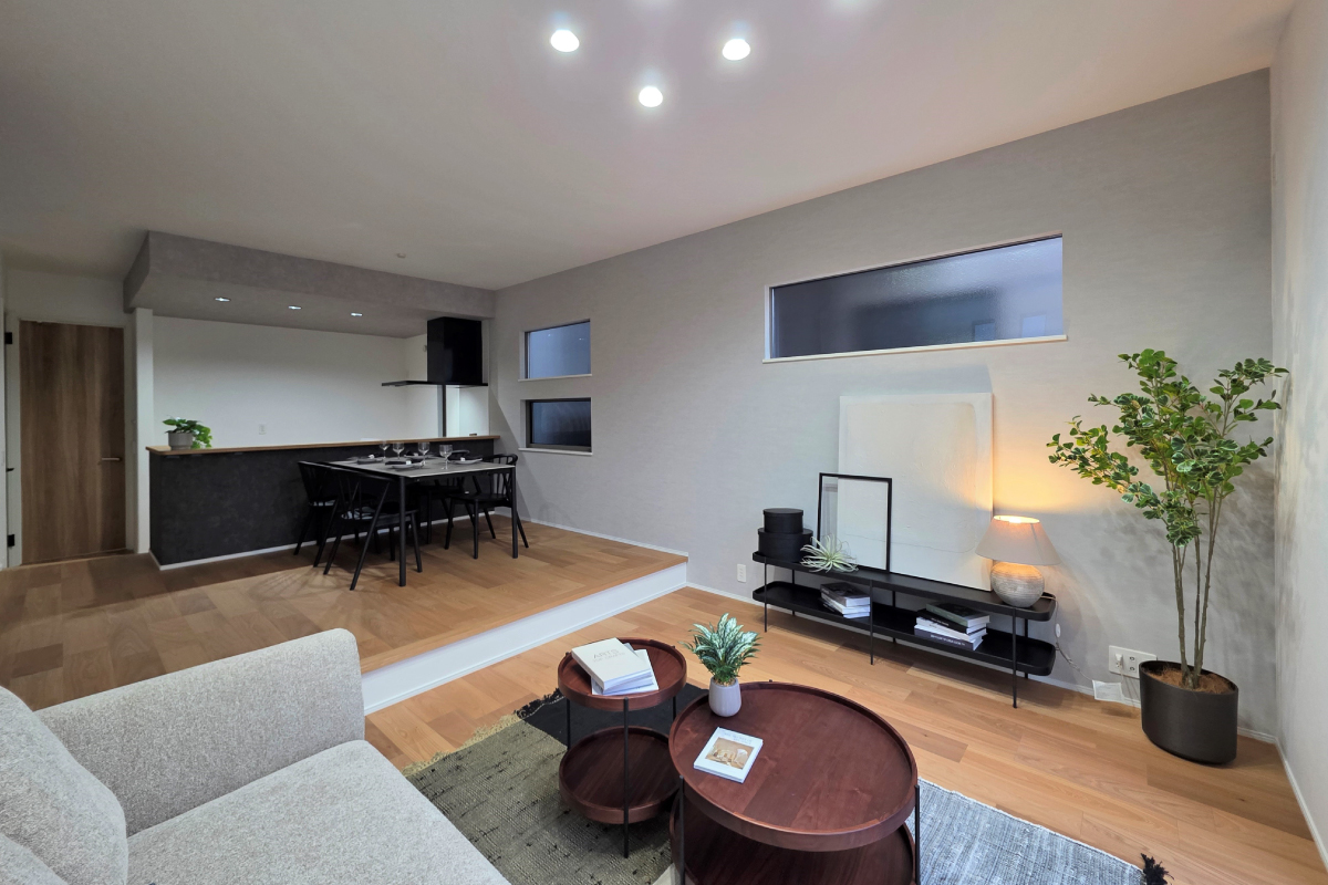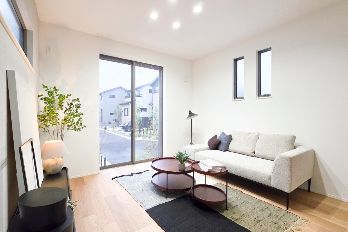 テレビやソファーを置いてもゆったりとお使いいただける寛ぎのリビングに、家族も自然と集まります。