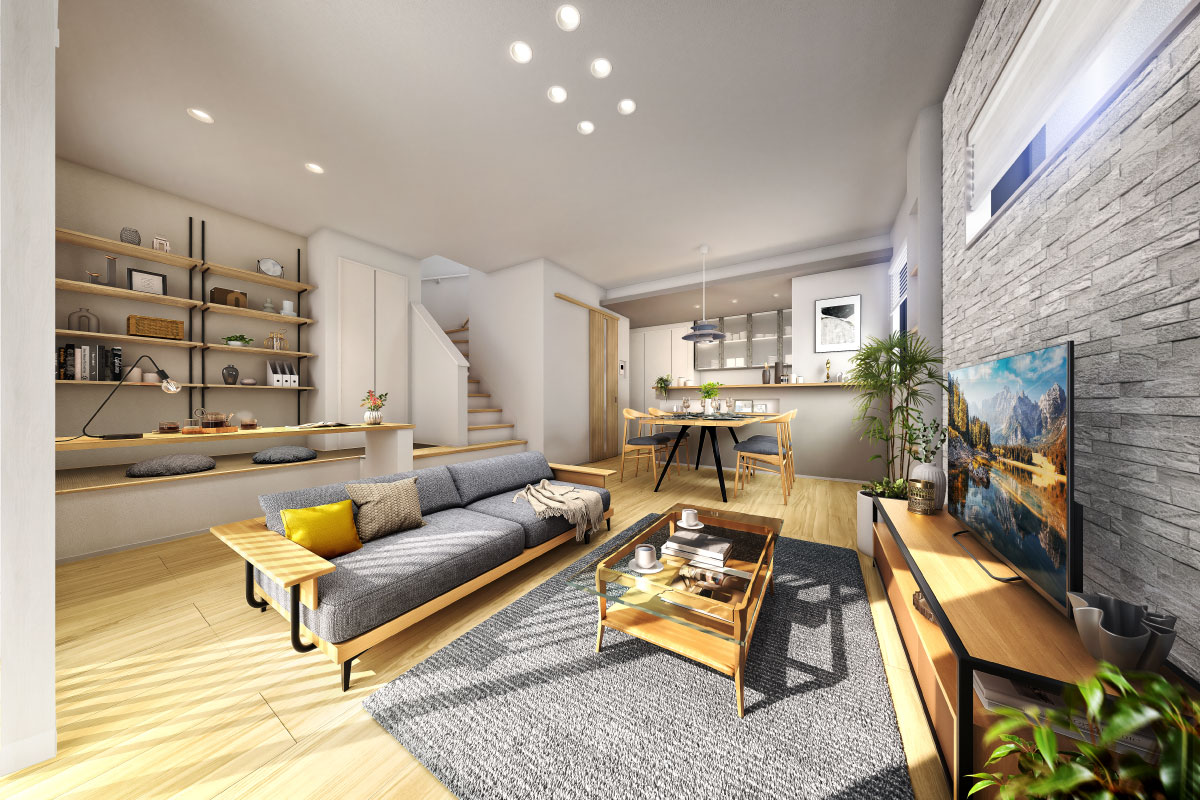 リアルな素材感のある意匠が、空間に新たな表情を描きます。リビングを上質に演出します。※号棟によりカラー・デザイン設定が異なります。