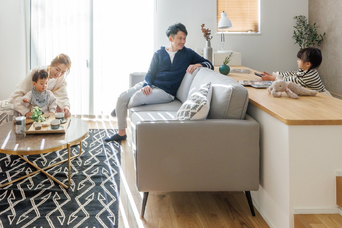 開放感や採光性を高める天井高やサッシを標準設計し、家族のコミュニケーションを考え、ハイオープンキッチンを採用。フロアなどのインテリアにもこだわり、細部まで住まう人の心地よさに配慮しました。