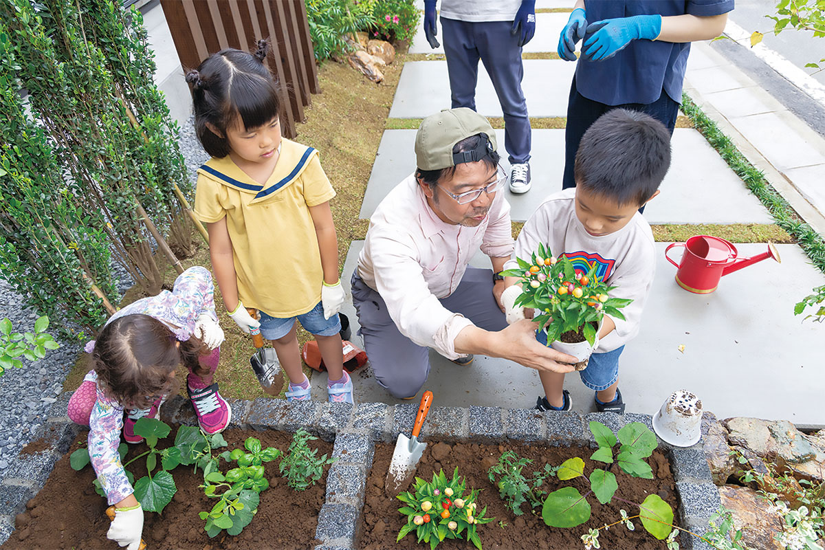 さらに野菜づくりや畑の体験を楽しめるワークショップを開催し、地域とつながるコミュニティを醸成。庭仕事や畑をきっかけに、ご近所さんや地域の農家とのつながりを生み出します。
