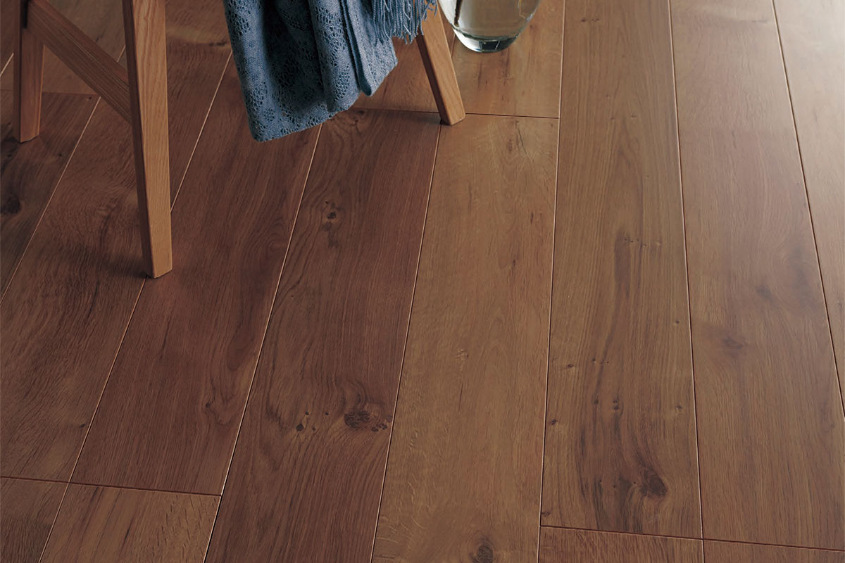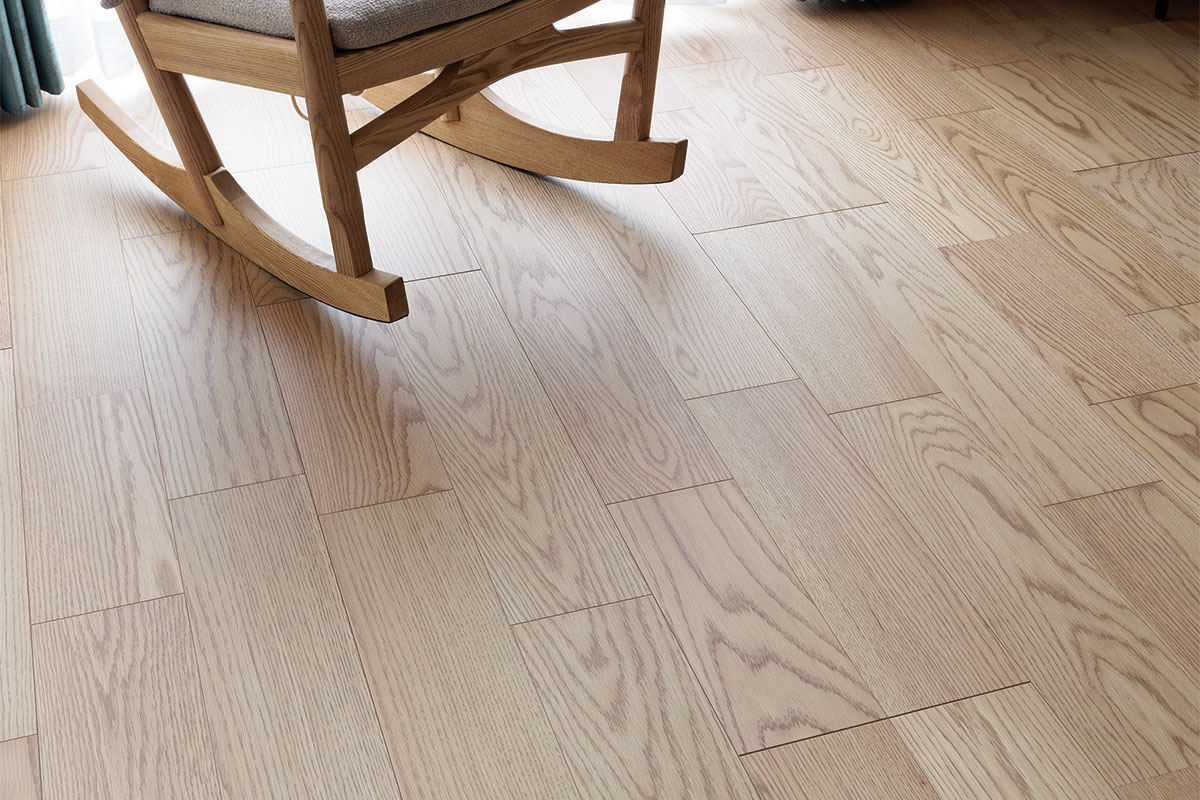 天然樹木の質感を活かした抗菌・抗ウイルスフロア。天然素材のもつ木味や風合いを最大限に引き出す新たな塗装法を採用。耐傷性能や耐キャスター性能など現在のフローリングが求められる性能を満たしながら、天然木の質感をより一層楽しめます。(1Fフロア)
