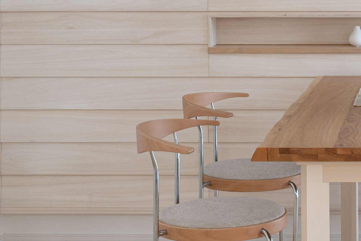 ポラスが桐材に精通した地元建材メーカーと共同開発したKIRINOKAシルキーウッド。日本で古くから親しまれてきた桐の無垢材を現代のインテリアに合う素材として仕上げました。職人が一枚一枚浮造り加工を施し、自然派オイルステインで素地に近い風合いに。桐ならではのやわらかさとしっとりした質感を楽しめます。