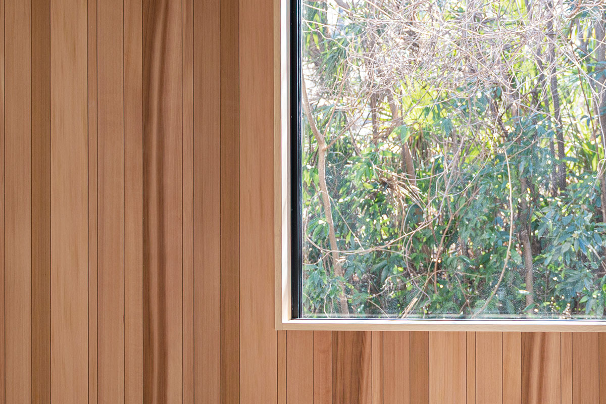 木の個性を最大限に引き出した天然木壁材。素材の豊かな色幅と腰のある表情が生み出す自然素材ならではの魅力があるレッドシダーを採用しました。年月を経る事に魅力を増していきます。