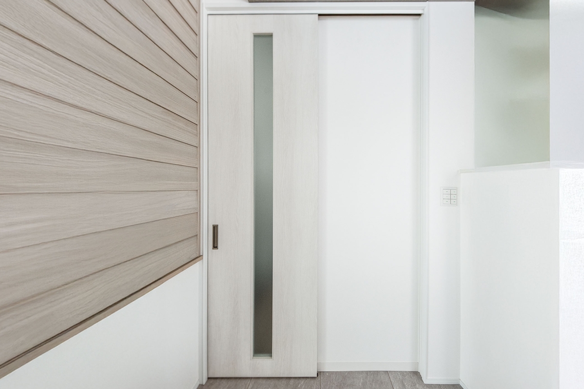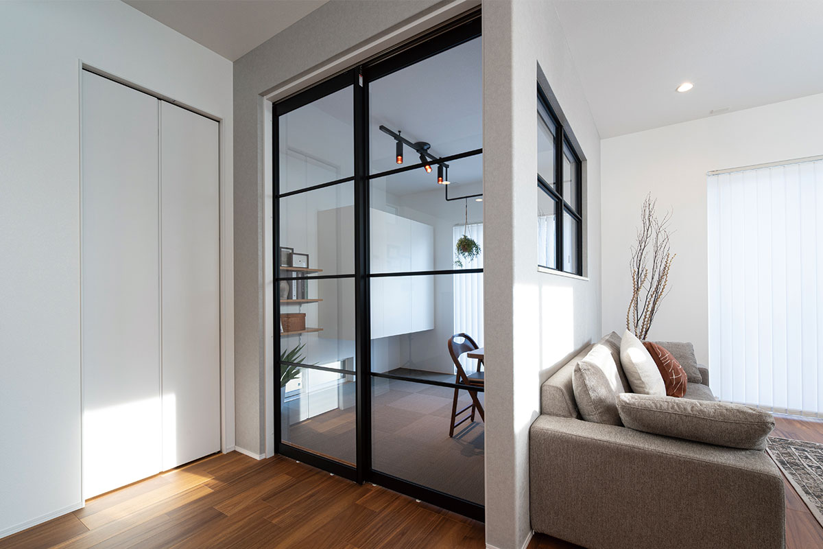 木漏れ日のようなやさしい陽光を通すガラス引戸。閉じていても開放感があり、家族の気配を心地よく感じられます。