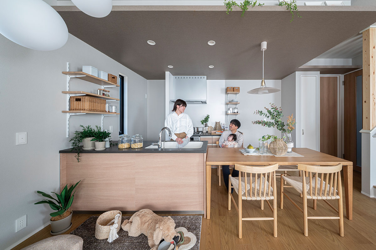 キッチンから見守れる安心のペットコーナー。家族と同じ空間でゆったりと過ごせる、ペットにも優しい住まいをご提案します。
