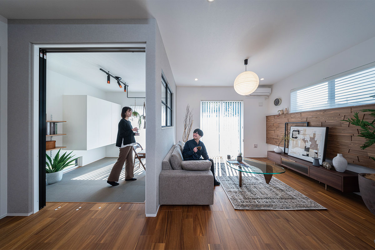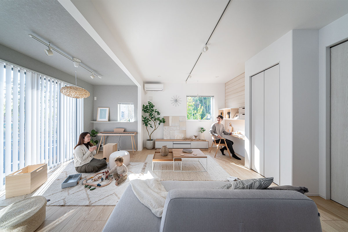 穏やかな時間を舞台に、家族の笑顔が映えるリビング。