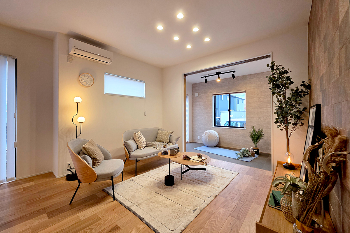リビングに隣接したコネクトルーム。建具の開閉でキッズスペース、書斎、客間や個室として多用途にご利用いただける便利空間です。