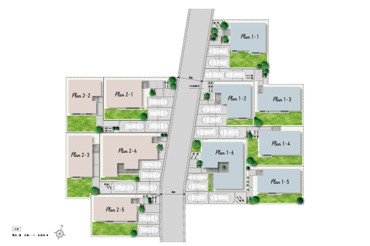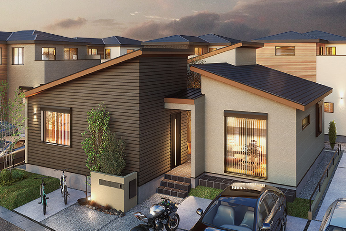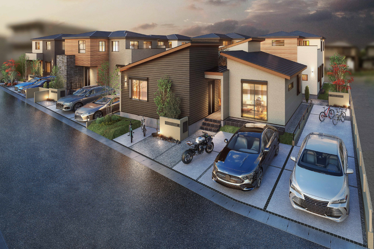 一邸一邸建物形状や外壁アクセントに変化を持たせることで個性豊かな住まいをデザインしました。