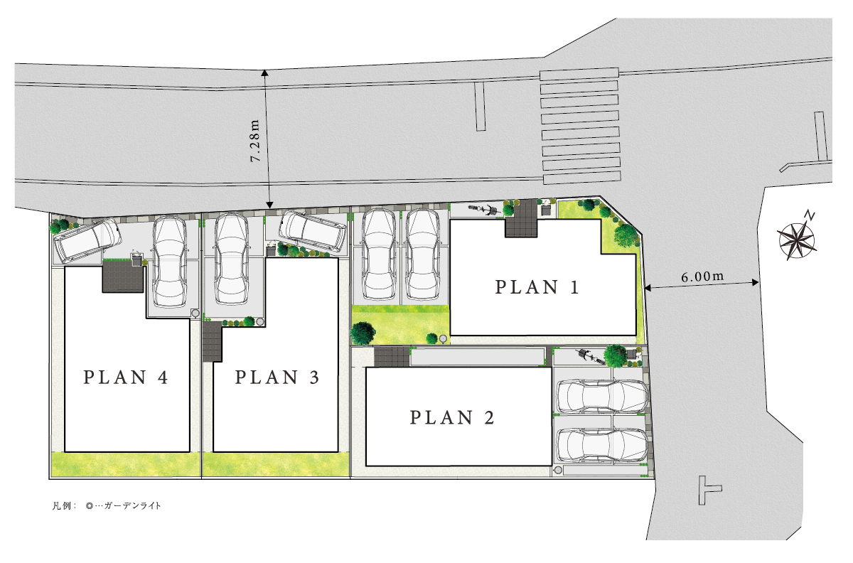 ■前面道路6.0m・7.28mに面した開放的な街並み。
