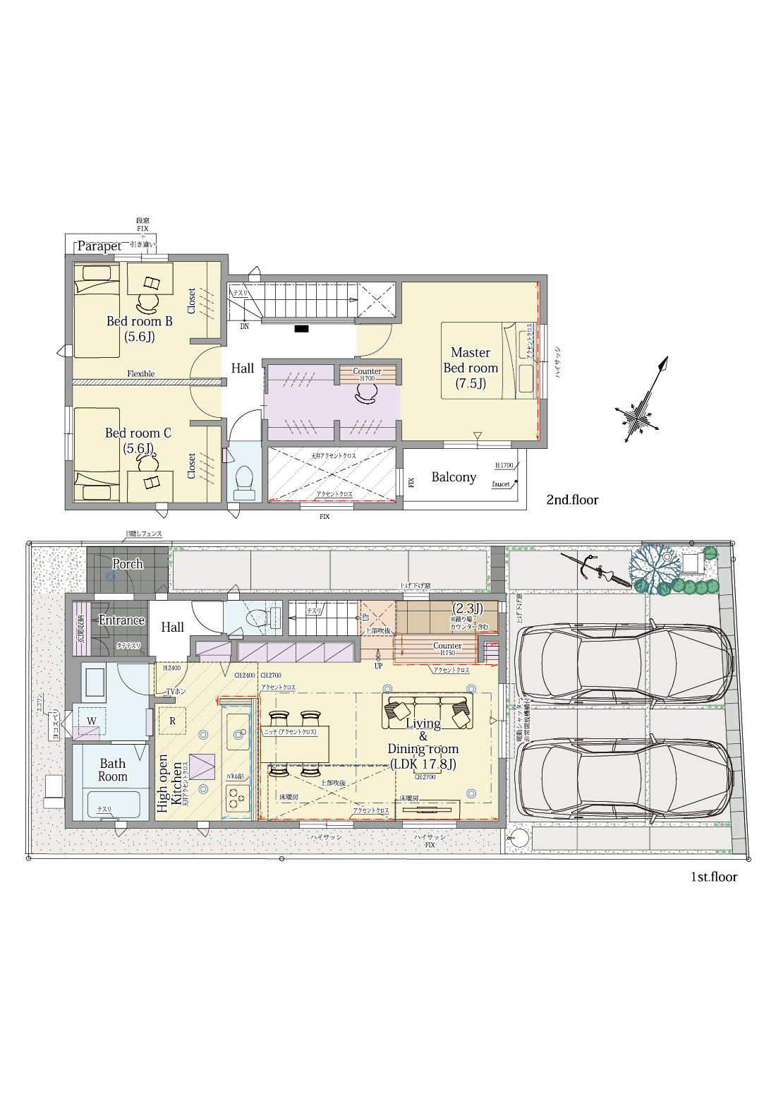 ※外観パースは図面をもとに描き起こしたもので、実際とは多少異なります。