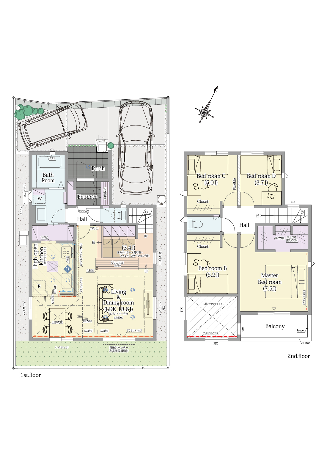 東武東上線・JR川越線「川越」駅利用。全棟敷地面積110㎡超、カースペース2台のゆとりある4邸。