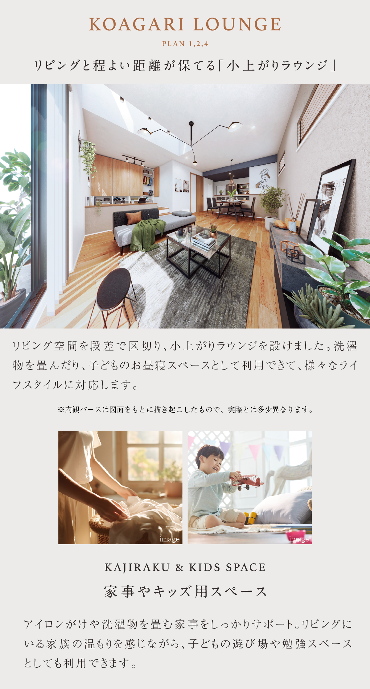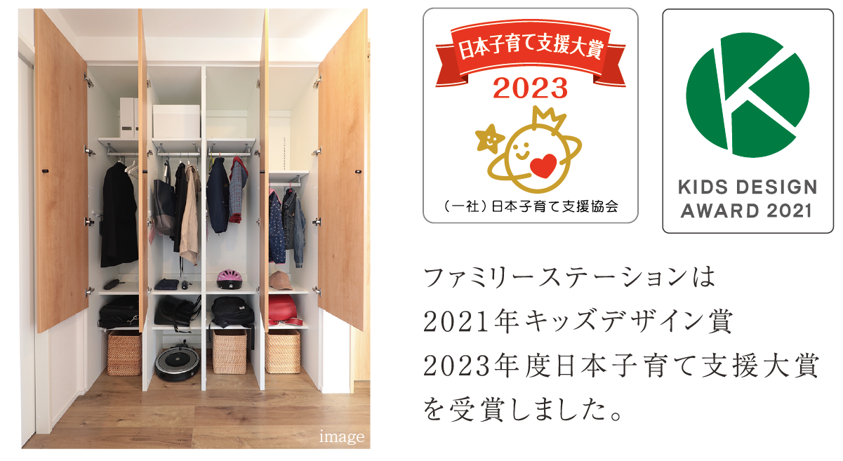 縦の広がりと陽光が注ぐリビングにつながる2スタイルの+α空間や適材適所の収納空間のほか、子どもの自主性を育むファミリーステーションが暮らしを魅力的に彩ります。