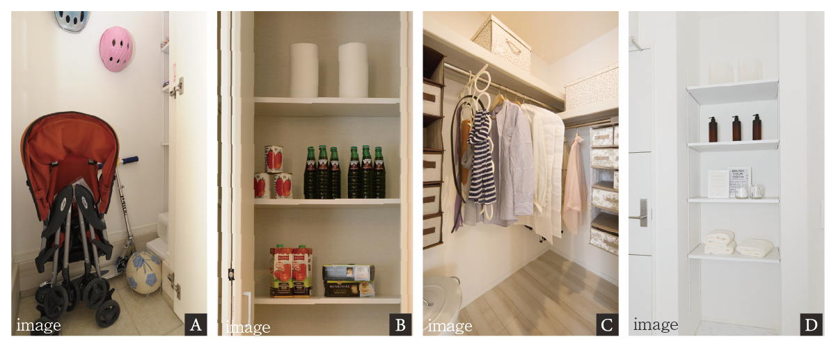 衣類や小物をはじめ、季節の家電などもしまうことができます。