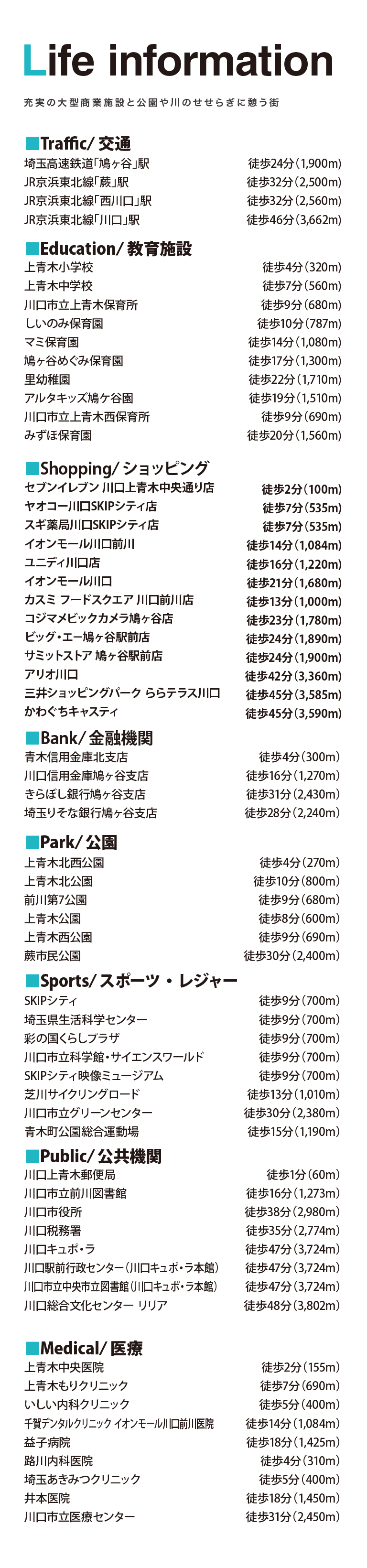 交通 JR京浜東北線「川口」駅までバス19分「上青木西5丁目」バス停まで徒歩2~4分