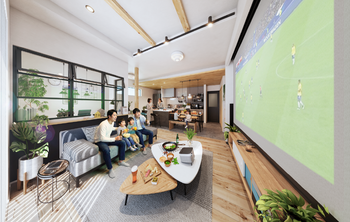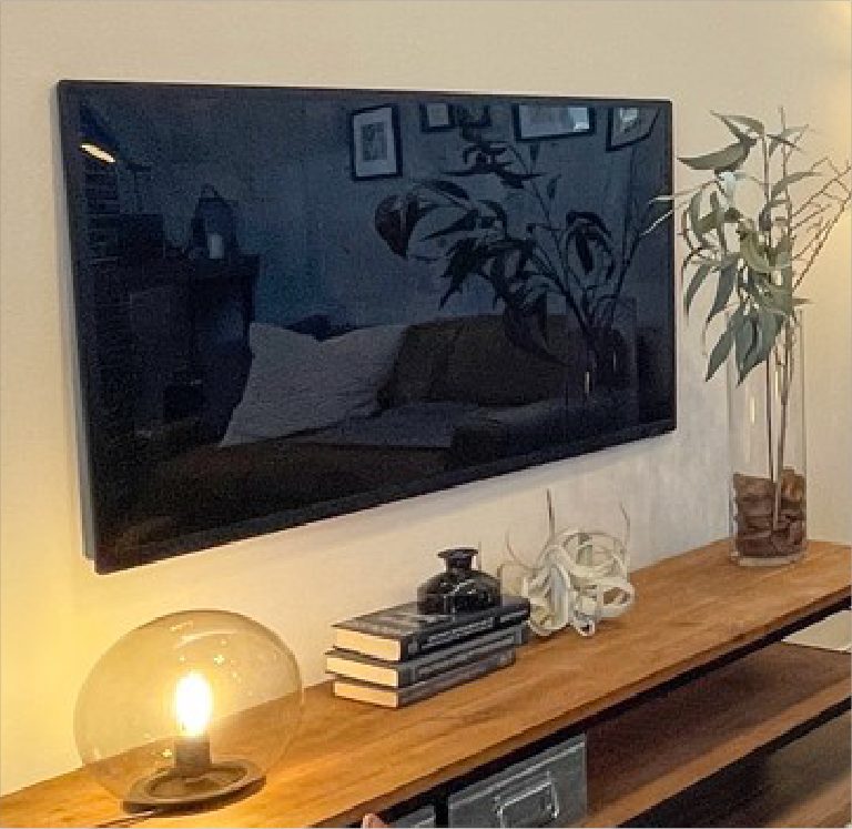 空間を広く、贅沢に使う。壁掛けテレビ対応の下地を備えました。