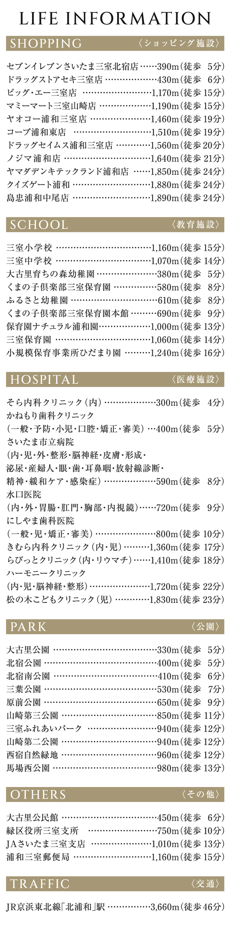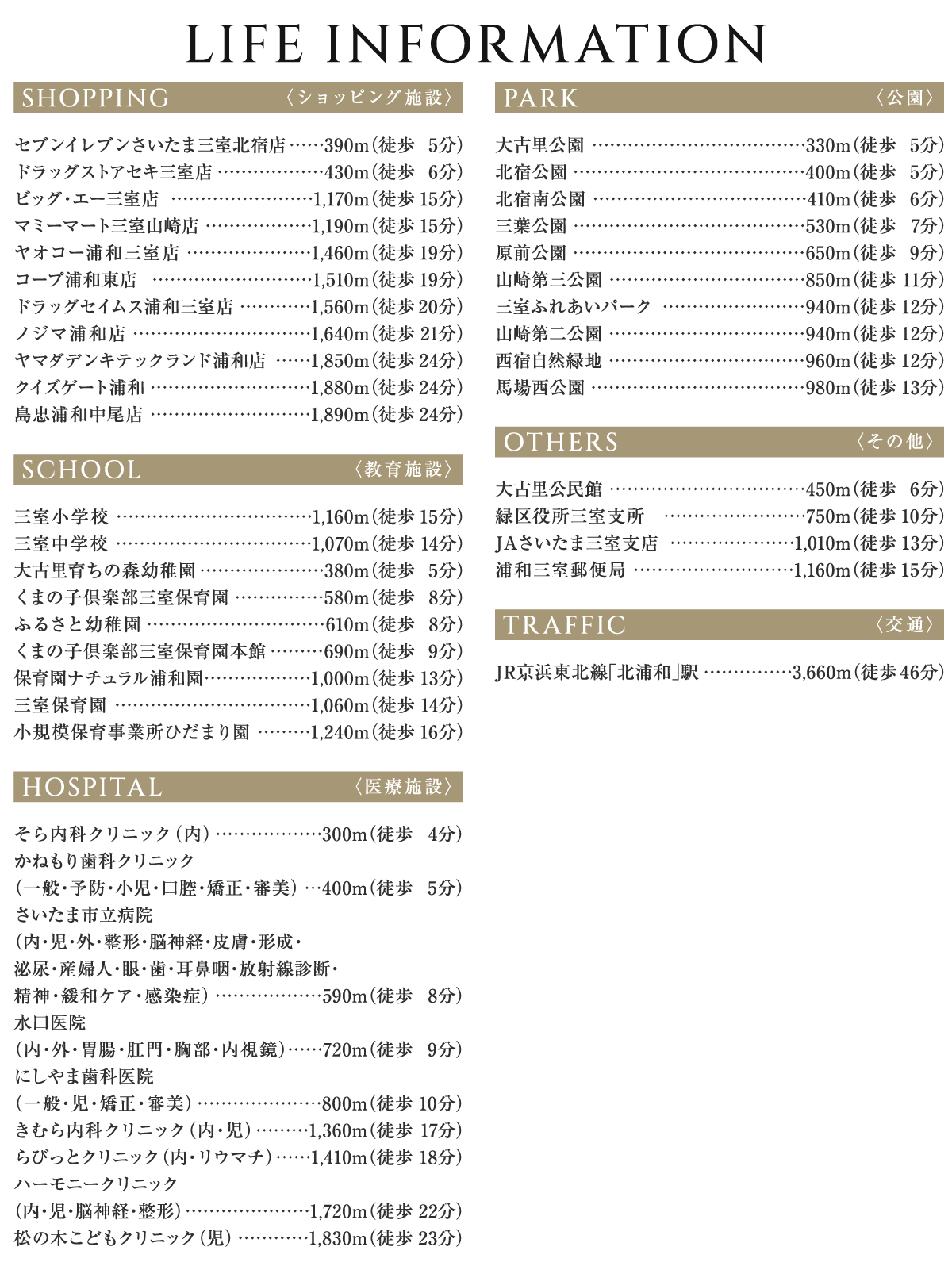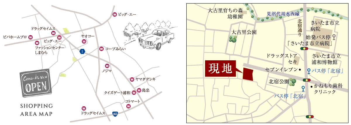 JR京浜東北線・JR東北本線・JR高崎線「さいたま新都心」駅までバス23分「北宿」バス停まで徒歩6分