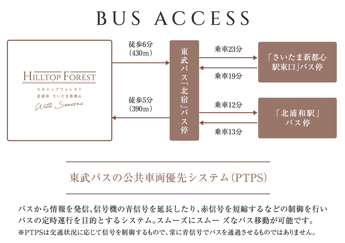■バス利用で「北浦和」/「さいたま新都心」の2駅が利用可能。