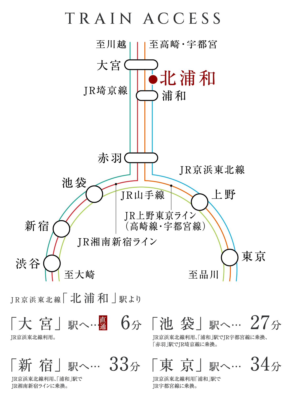 アクセス ●北浦和駅より大宮駅まで【ラッシュ時: 6分 京浜東北線(大宮行)利用。】【平常時: 6分 京浜東北線(大宮行)利用。】