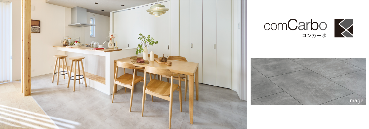 無機質でありながら左官のコテ跡を模した独特の風合いが魅力のコンカーボを採用。
