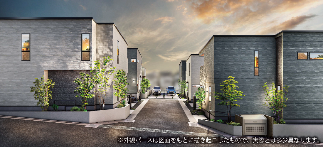 ※外観パースは図面をもとに描き起こしたもので、実際とは多少異なります。