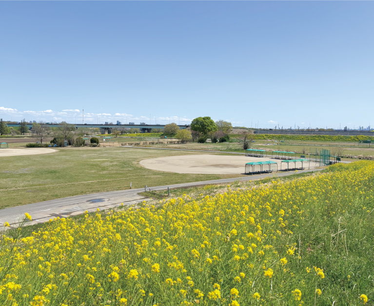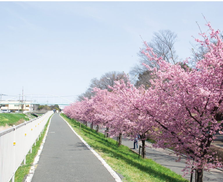 サイクリングやジョギングなどが気軽に楽しめる散歩コース。季節ごとの自然や川面の水鳥などが彩る風景を楽しむことができます。