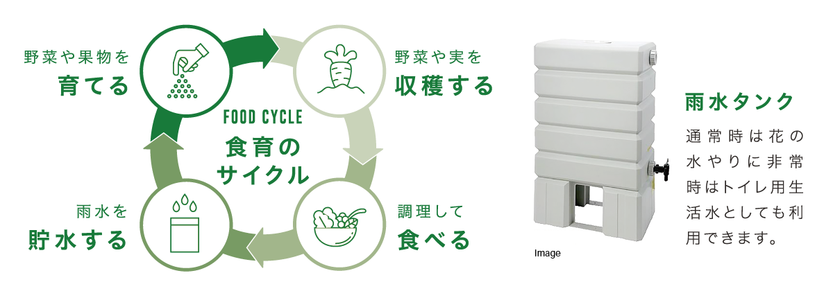 ■雨水タンク・非常用貯水タンク「マルチアクア」など防災意識した仕様。