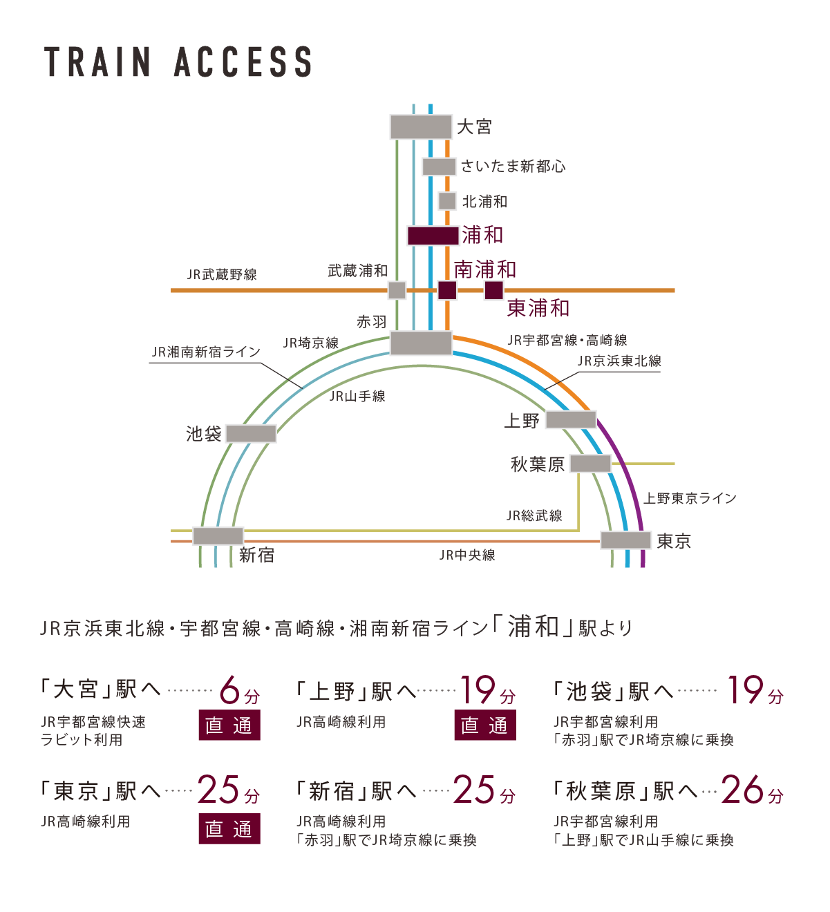 ※電車の所要時間は朝の通勤時のもので、乗換の待ち時間を含みます。また、時間帯により異なります。