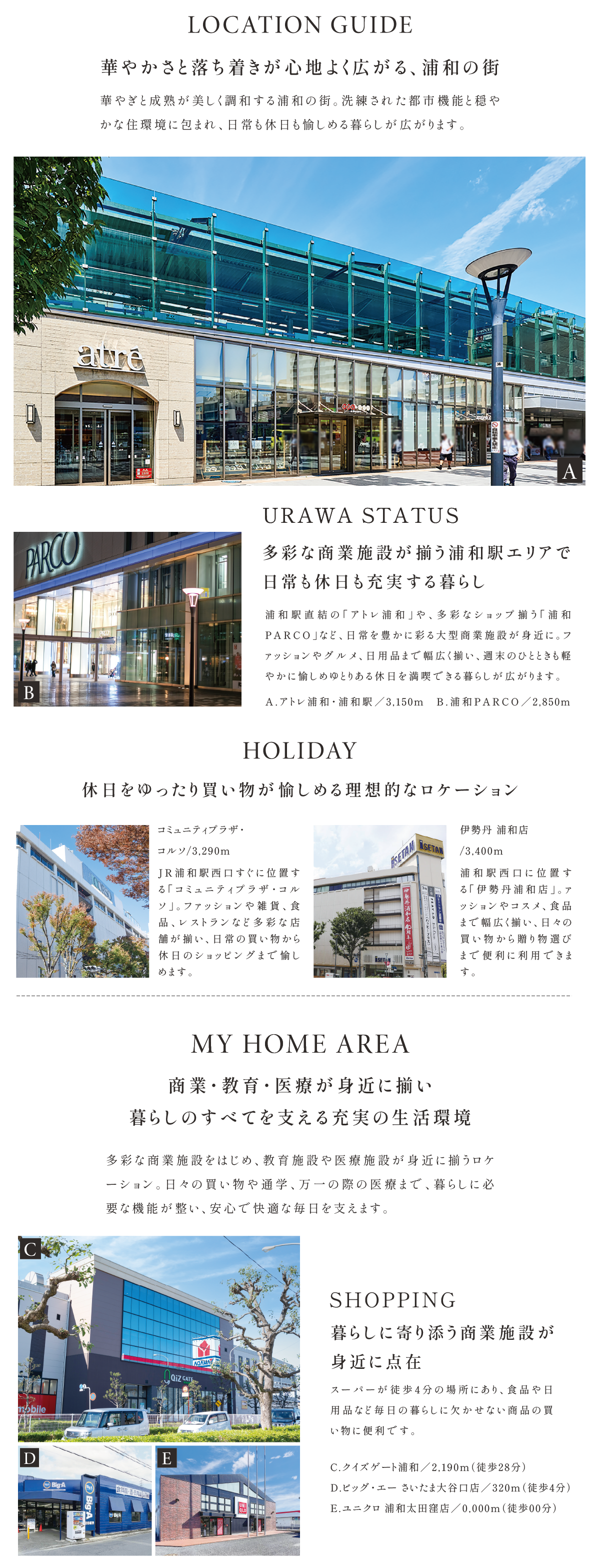 JR「浦和」駅利用。南東道路に面した3邸。文教地区に相応しい高級感纏う街並み。