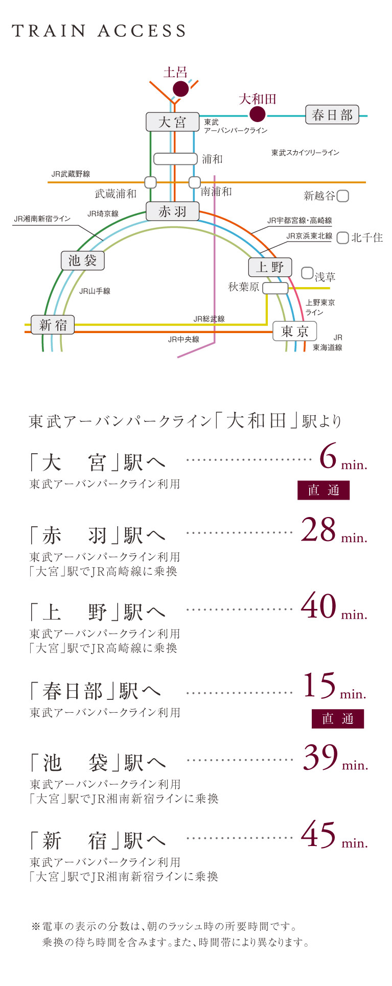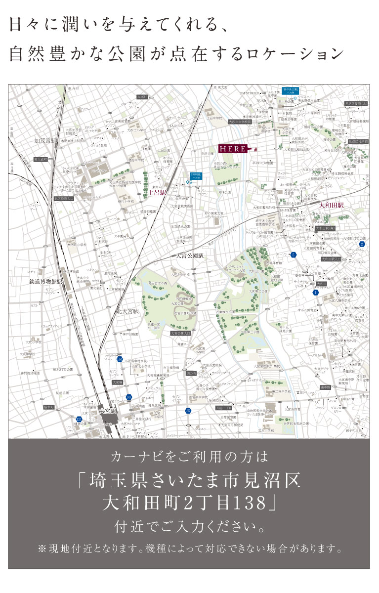 ■「大和田」駅より、ビックターミナル「大宮」駅まで直通6分■東武アーバンパークライン「大和田」駅 徒歩14分■JR東北本線(宇都宮線)「土呂」駅 徒歩18分■敷地面積130m2以上×全邸カースペース2台分■「風致地区」に誕生するゆとりある街並み■和の風情を取りこむジャパンディスタイルの住空間■交通利便性が高く、美しい見沼田圃の情景が日常にある街■陽当たり・風通しが良く、浸水被害の可能性も低い高台に位置■小中学校へ徒歩7分圏内
