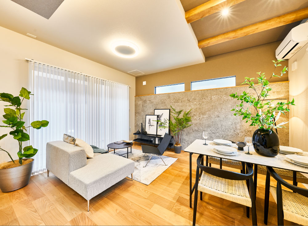 全邸が100㎡を超える敷地面積を確保し、その魅力を享受できるよう広いリビングを採用。随所に美しさと優雅さで包み込む