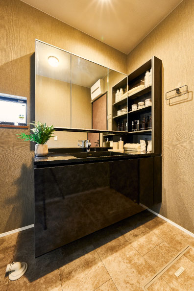 ワイド1200サイズの広々とした洗面化粧台。
