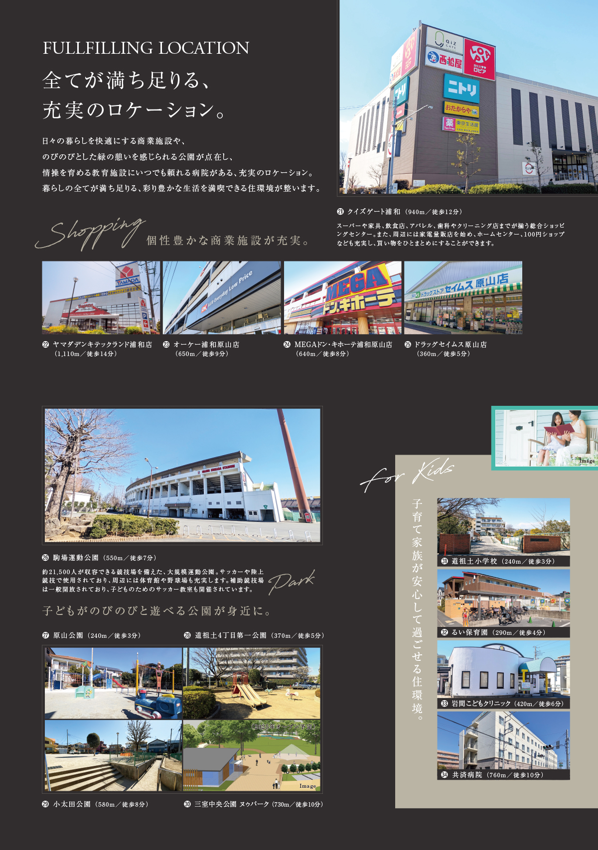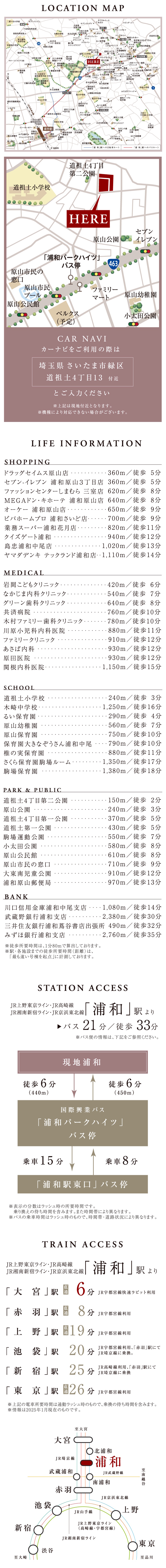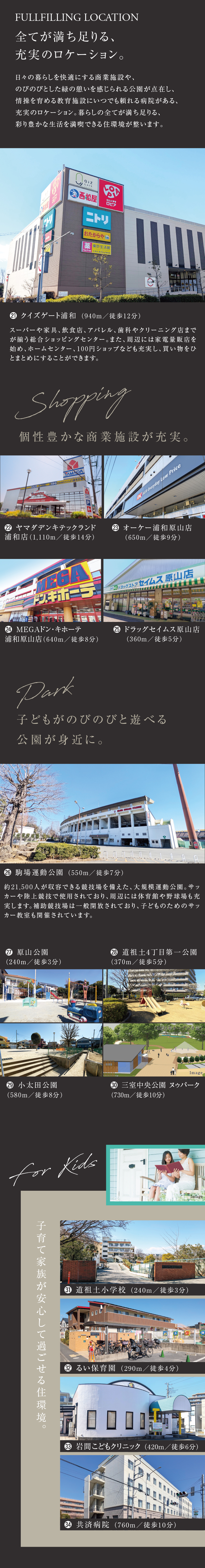 ■こだわりの4ブランドが織り成す珠玉の全25邸■大型商業施設や大規模公園も身近に整う浦和エリア■「大宮」駅へ直通6分、都心へのアクセスも良好■道祖土小学校まで徒歩3分、子育て家族が安心して過ごせる住環境■楽しみながら子育てできる様々な設え■趣味や自分の世界に没頭できる空間