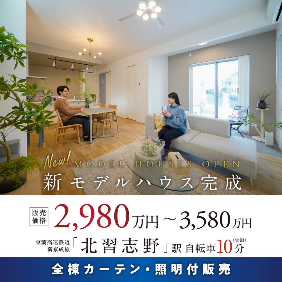 2980万円~3580万円現地街並み完成!!【全9邸】東葉高速鉄道・新京成線「北習志野」駅自転車10分(実測)。■2030年レベルのZEH水準を備えた住まい■キッチンを中心とした暮らし■家庭菜園スペース「エディブルガーデン」■整備された街並みと安心安全な「クルドサック」■標...