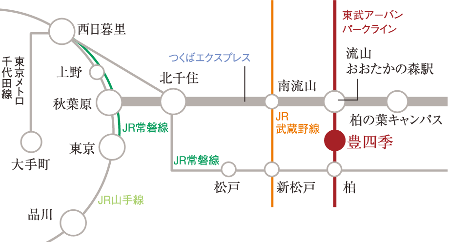 東武アーバンパークライン利用「流山おおたかの森」駅乗換え
