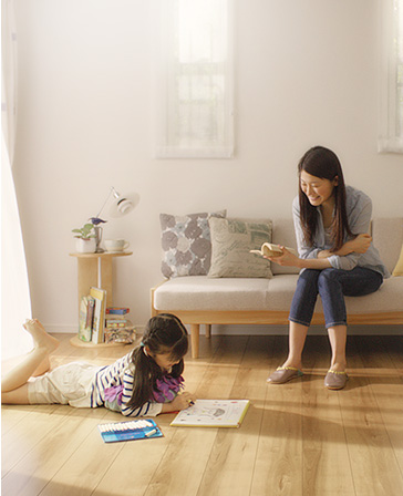 データを基に各邸の窓配置や開口方向を検証することで、夏は身体にやさしい自然の涼をつくり出し、室内の高温・多湿を防ぎます。基礎と土台を接触させない「基礎パッキン工法」は、雨や湿気から土台を守り、床下換気によって土台の耐久性を高めています。